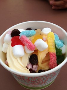 We headed up to Ankeny for dinner at Chip’s [seriously the free homemade chips they give you in baskets full before the meal are incredible. Pretty sure I ate way too many]. I got the usual….chicken fingers and fries. I am way too predictable when ordering. After dinner we headed over to Lemon Tree for some delish frozen yogurt. Everyone else of course had ice cream with fruit and healthy items, and I, well, didn’t. I’m all about the candy on my ice cream! Soooo yummy.