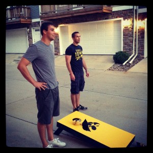 After ice cream we headed over to my brother’s house to play a little bags. Guys vs. guys, and the ladies sat in the “stands” [aka townhome entrance front porch] to cheer every time something good happened! They played two games and my dad and brother won both TIMES. They killed it!