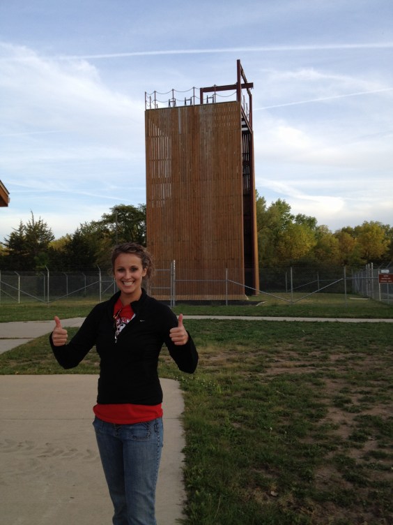 Some troopers from the Iowa State Patrol joined us today to facilitate some major leadership building skills. They started the class with a little introduction and then said the words I feared the most: “today everyone will rappel down the tower, and not only once, but twice. Unless you are pregnant or have a major medical issue, there are no other excuses!” Eek! Not what I wanted to hear.
